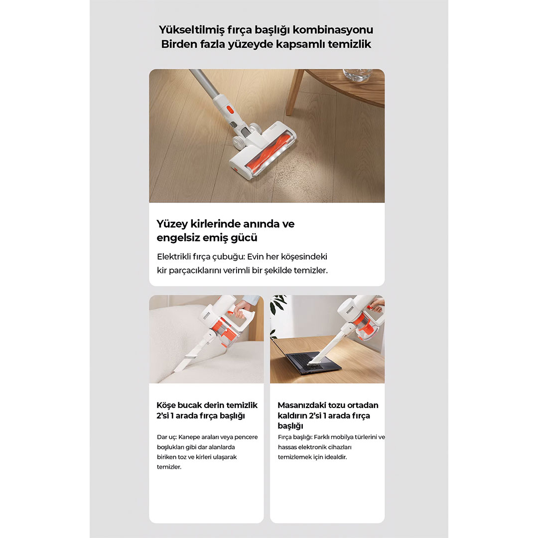 Geliştirilmiş fırça başlıklarıyla her alan için derin temizlik
