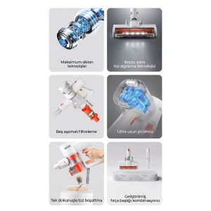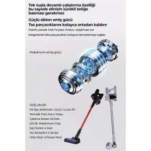 Dahili yüksek hızlı fırçasız motor, toz ve kirleri anında emer.