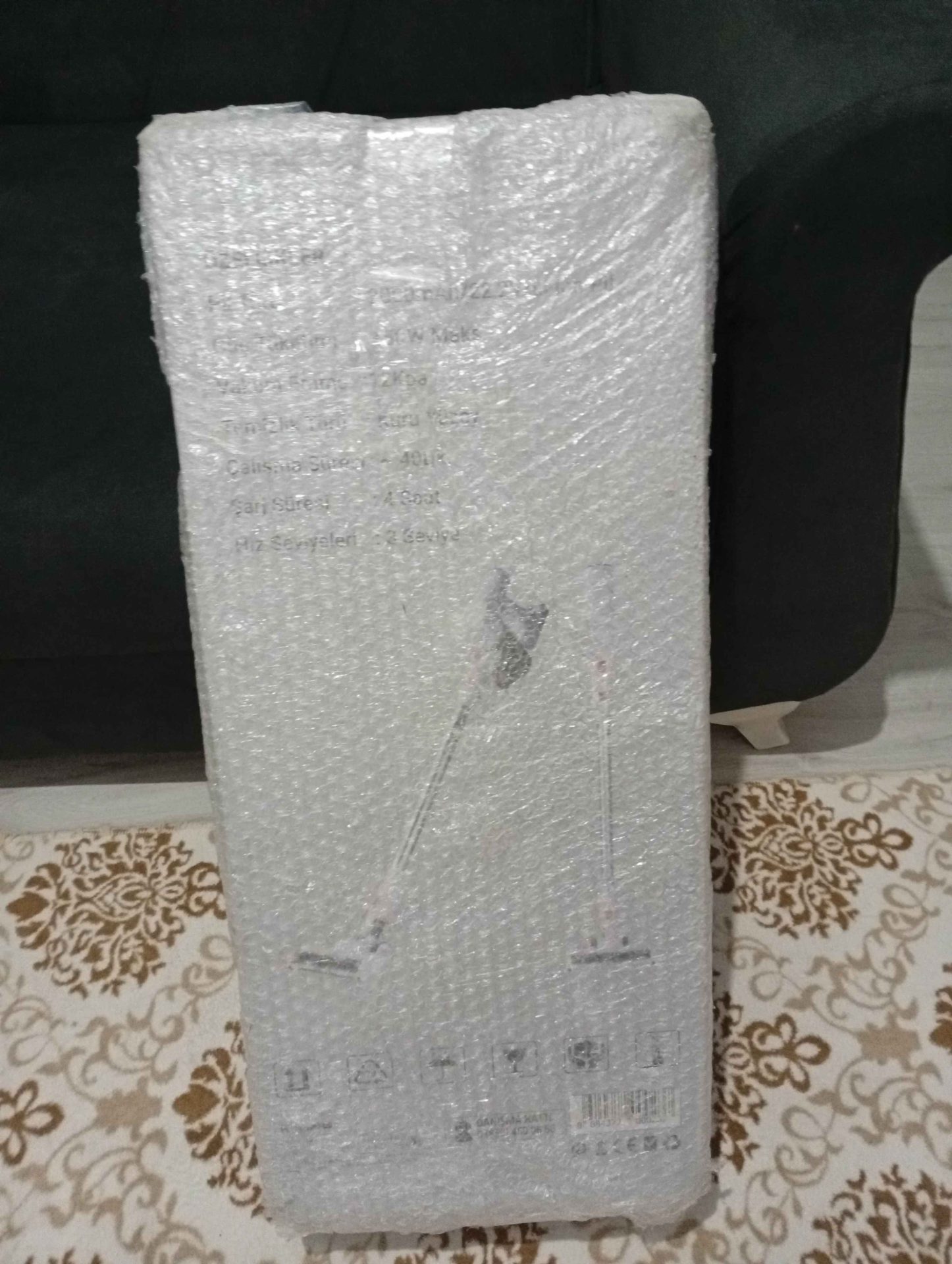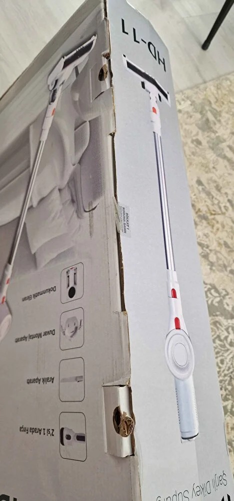 paketleme cok kotuydu sadece kendi kutusuyla gonderilmis ve heryeri acilmis belli makinanin kullanim suresi maksimumda 20 dakika yaziyor ama 14 dakikada jarji bitti 60 metre kare evi supuremedim jarj dolum suresi 4 saati asiyor geri iadeyi deneyecegim