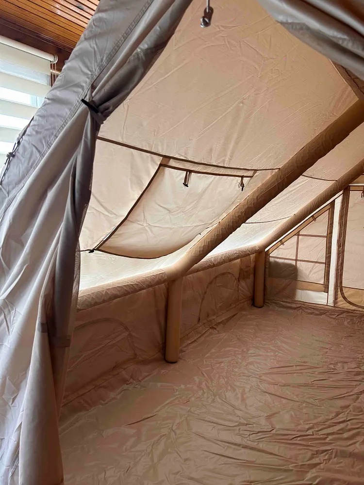 Doğa severlerin vazgeçilmezi robo şişme kamp çadırı geniş iç mekanı, dayanıklı malzemeleri ve kolay kurulumu ile sizi unutulmaz kamp deneyimleriyle buluşturuyor. Büyük boyutuyla geniş ve ferah bir yaşam alanı sunan çadırımız, aileniz ve arkadaşlarınız ile birlikte keyifli tatiller ve mutlu anlar yaşamanıza imkan sağlar.