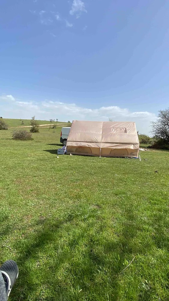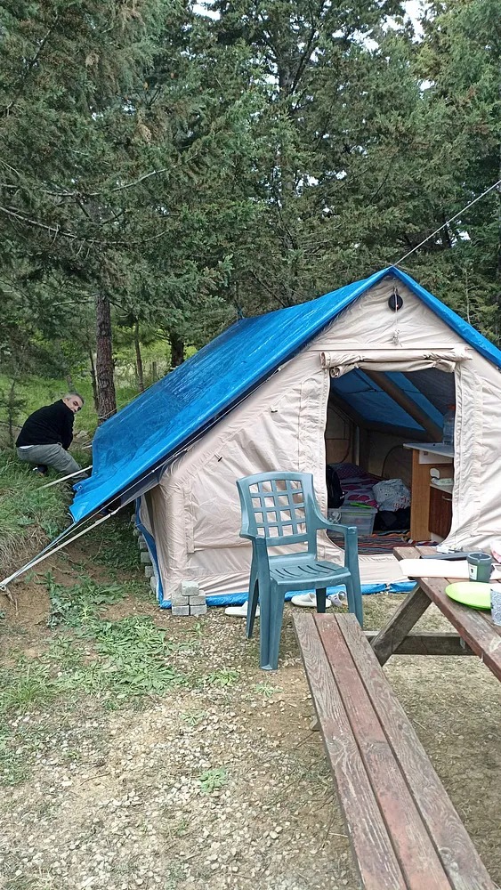 Kampta herkes soruyor bu çadırı şahane gerçekten. Kurumu çok kolay toplaması biraz zor sıkı sarmak lazım. Ben altına branda aldım çok temiz oldu. Şuda var, çadır büyük ama 12 kişilik bir çadır değil. Biz 3 kişi eşyalar şişme yatak tam oluyor. İyiki almışım.