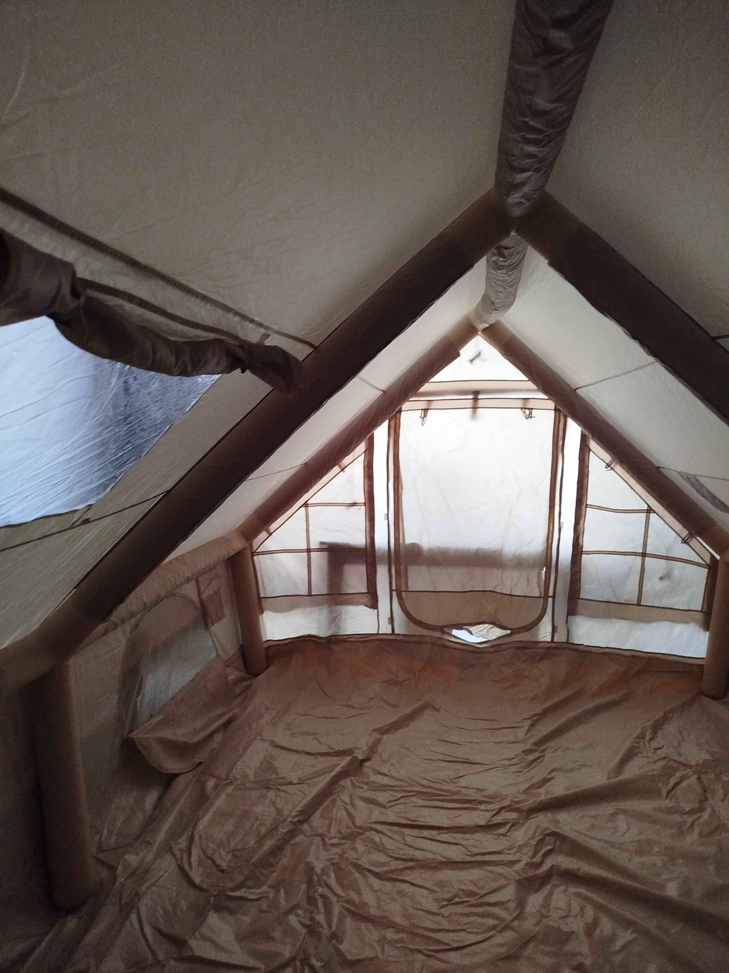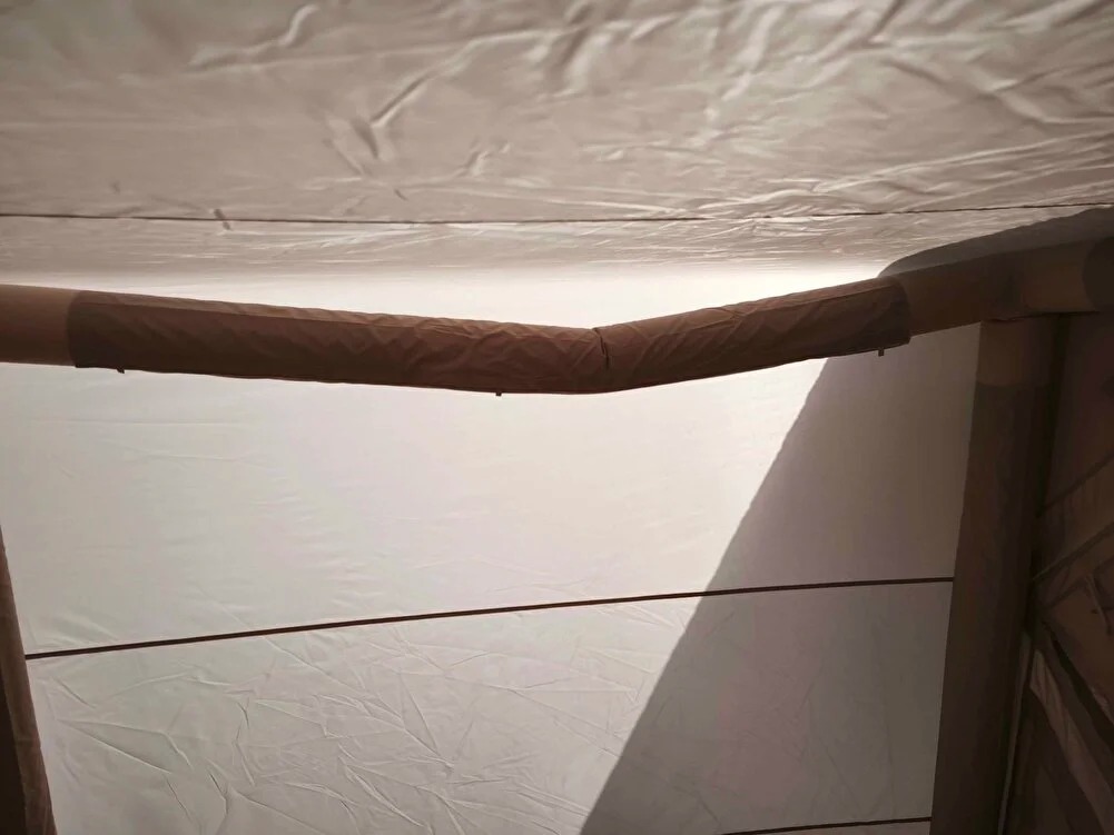 İlk şişirdiğimde kiriş eğikti ve iki üç saat sonra çadırın havası indi. Sonradan pompayla şişirilen bölgedeki halkanın tam sıkılı olmadığını görüp düzelttim. İlkinden biraz daha fazla olmak koşuluyla tekrar şişirdim. Kiriş düzelmişti ve çadır 15 saat geçmesine rağmen hava kaçırmadı. ilk şişirmede çadırı inen arkadaşlara tavsiyem şişirdiğiniz bölgedeki o halkaların tam sıkılı olduğundan emin olun