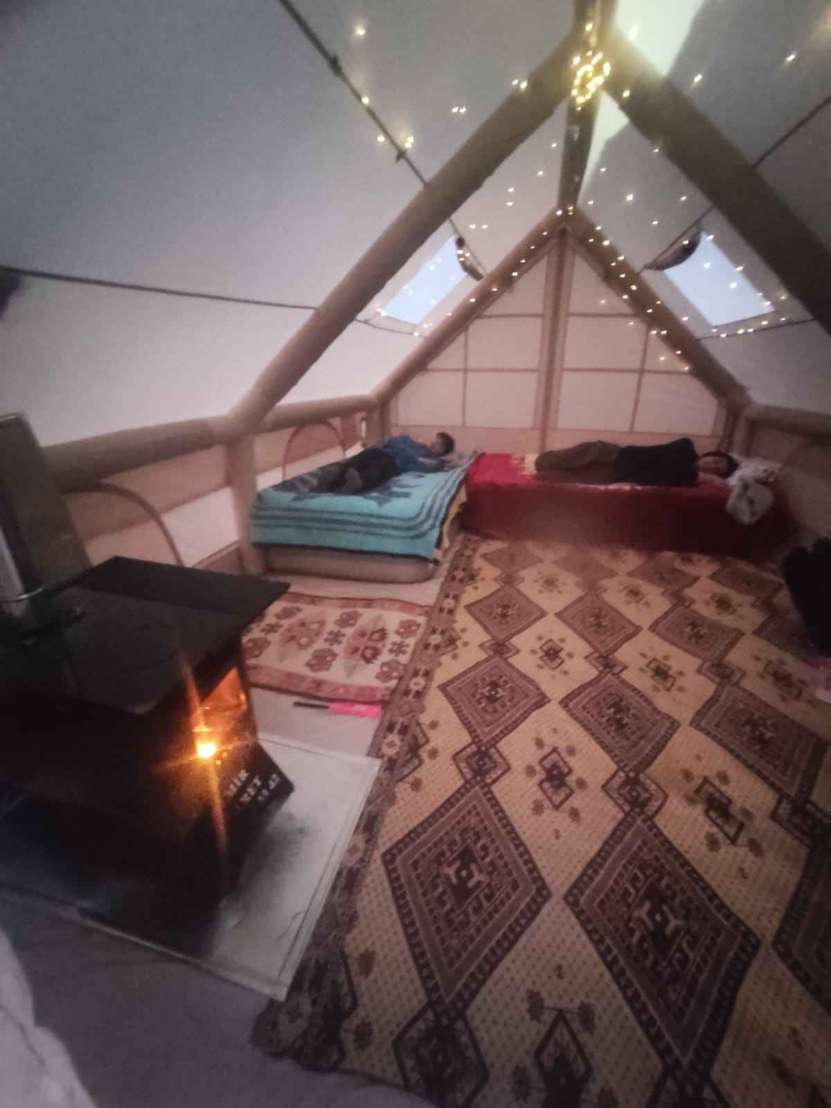 gerçekten çok güzel bir çadır kurulumu çok basit içine 4 adet çift kişilik şişme yatak rahatlıkla alır almak isteyen düşünmeden alabilir kesinlikle pişman olmaz