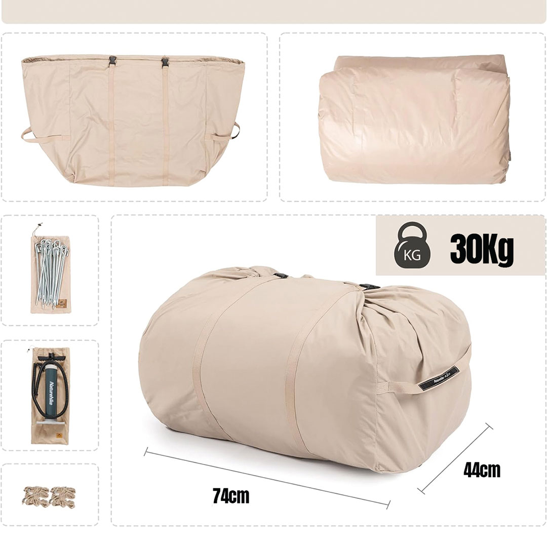 - Malzeme: Dış çadır: 300D Oxford kumaş, su geçirmez PU2000 mm TPU hava sütunu, kompozit kumaş kılıf;