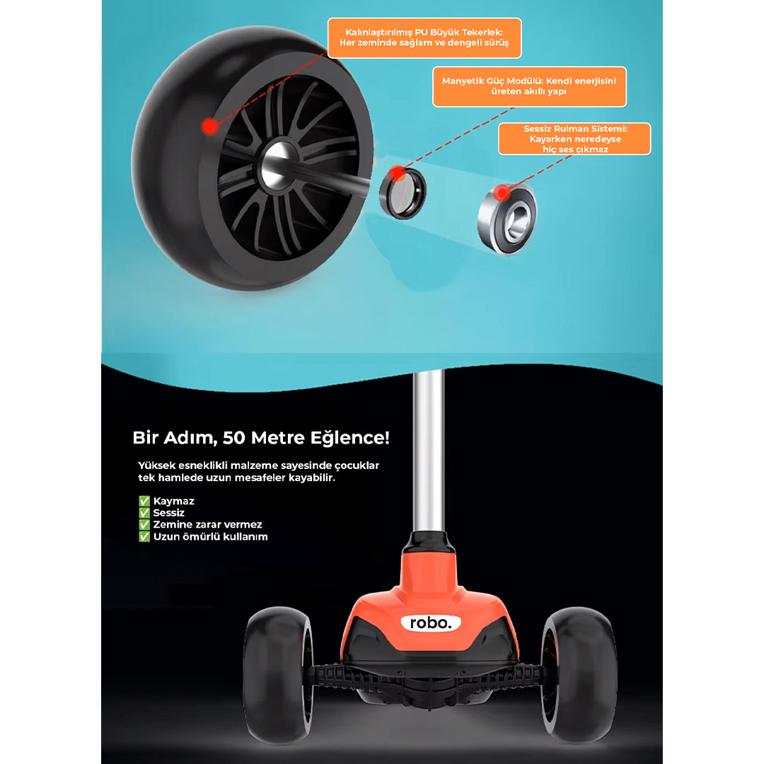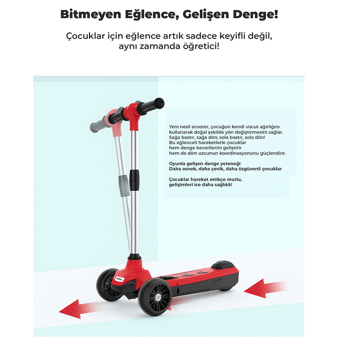 Çocuğunuza açık havada aktif olmanın ve eğlenmenin en keyifli yolunu sunun. Robo 3 Tekerlekli Çocuk Elektrikli Scooter ile hareket dolu anlar şimdi daha heyecan verici! 🚴♂️✨