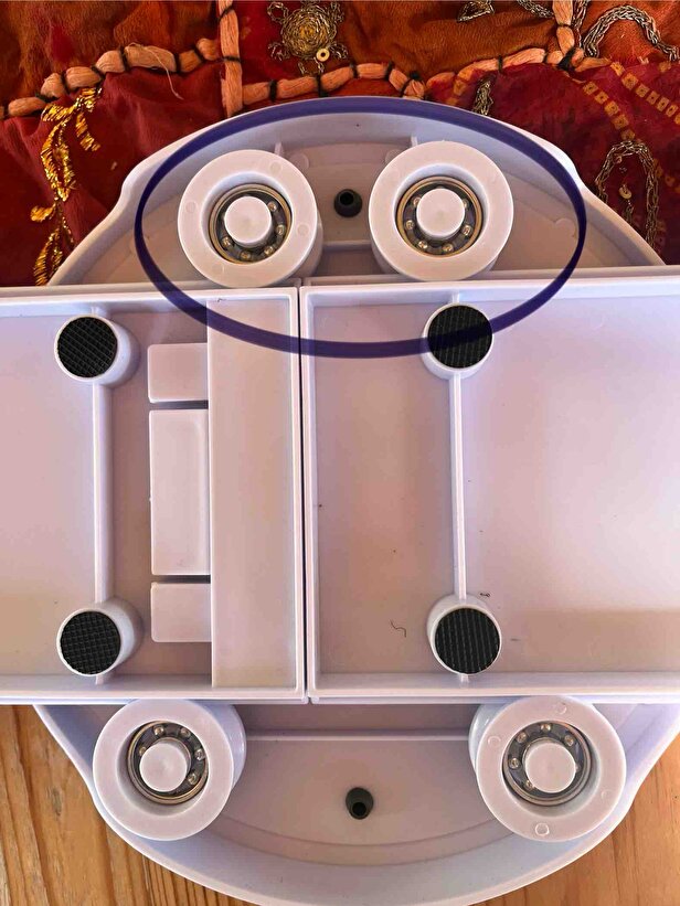 Çok beğendim, çok güzel. Montajı da kolay ama bir noktaya dikkat edilmesi gerekiyor. İlk monte ettiğimde iki tepsinin kaymadığını gördüm. Sonra tepsilerin altındaki araları dar olan tekerlerin dairenin iç tarafına bakması gerektiğini anladım. Fotoğraflarda işaretlediğim gibi. O zaman düzeldi hepsi olması gerektiği gibi kaydı.
