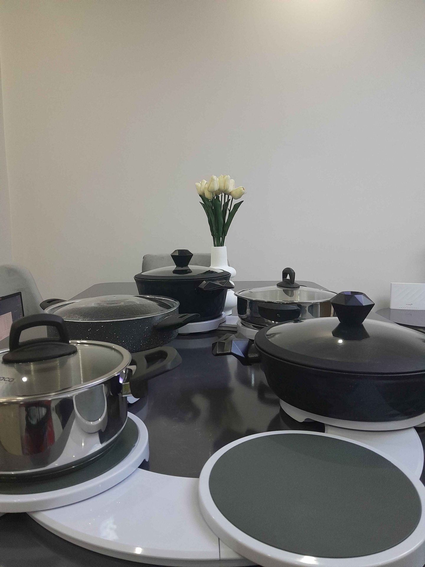 Kalabalık sofralarda servis artık çok daha pratik ve keyifli! robo Döner Masa Servis Tepsisi, 360° dönebilen yapısı, sessiz ve akıcı döndürme mekanizması ve ısıya dayanıklı servis tepsileri sayesinde masadaki yiyecek ve içeceklere kalkmadan kolayca ulaşmanızı sağlar.
