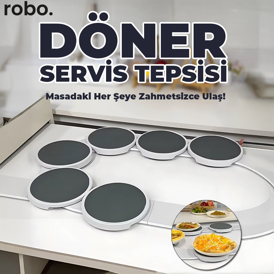 Kalabalık sofralarda servis artık çok daha pratik ve keyifli! robo Döner Servis Tepsisi, 360° dönebilen yapısı, sessiz ve akıcı döndürme mekanizması ve ısıya dayanıklı servis tepsileri sayesinde masadaki yiyecek ve içeceklere kalkmadan kolayca ulaşmanızı sağlar.