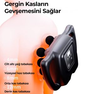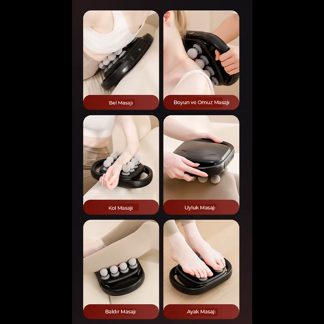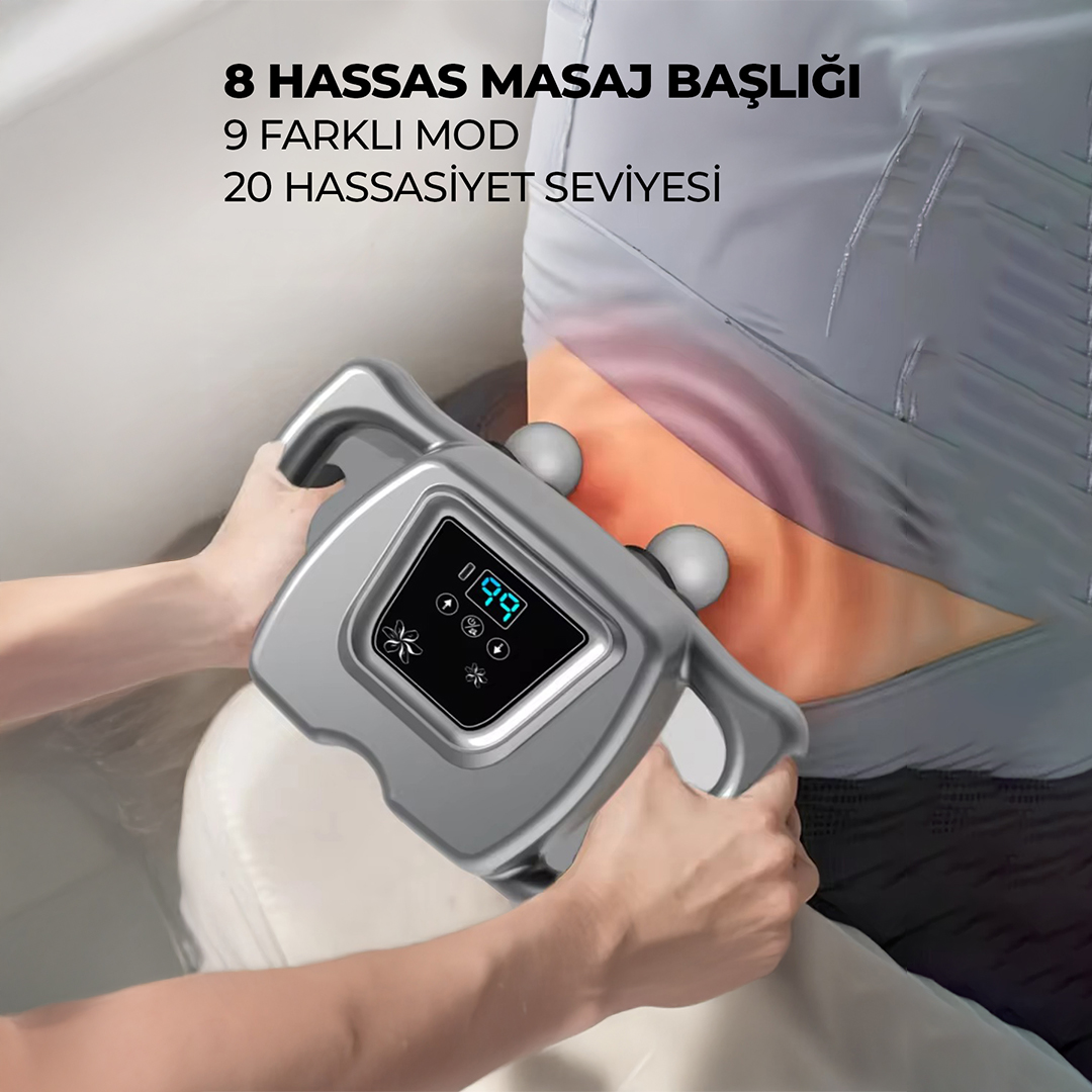 robo 8 Başlıklı Şarjlı Isıtmalı Masaj Aleti Kolay kullanım için tasarlanmış ergonomik yapısı ile evde profesyonel bir masaj keyfi sunar.