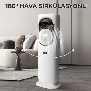 - Geniş açılı, 140-160 derece sağlı sollu git-gelli üfleme 220V fan motoru mevcuttur.
