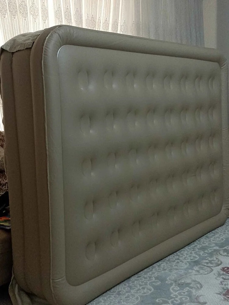 ürünü gelir gelmez ki çok kısa sürede geldi. Şişirip kontrol ettim, sağlam ve dayanıklı bir ürün , eşim ve ben üzerine yattık. Artık evime gelen şer için yatak indir, kaldır olmıyacak. Gerçekten hem, pratik, hem kolay hemde rahat . Kanepede yatmaktan , yatak açmaktan kurtulduk hatunlar için 👍tam bir kolaylık. Düğmeye bas şişir, düğmeye bas katlayyıp kaldır. Yer problemine son veren bir ürün. Dayanıklı bir ürün . ⭐⭐⭐⭐⭐