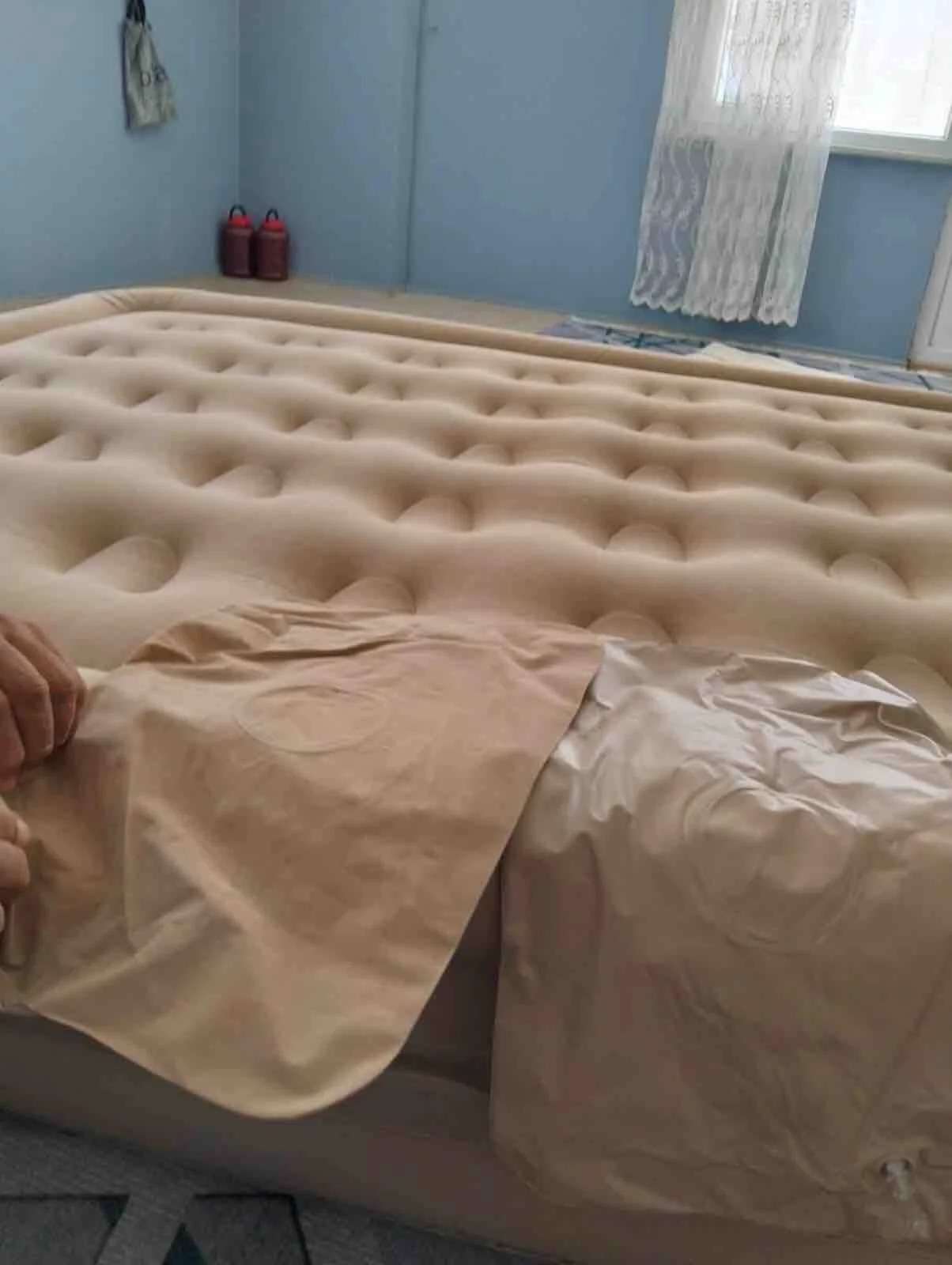 ürünü teslim aldım çok korkarak almıştım ama harika çokkkk iyi rahat üzerinin süet olması da başka bir güzel şişirdikten sonra sabaha kadar havası inmedi tavsiye ederim 🙏☺