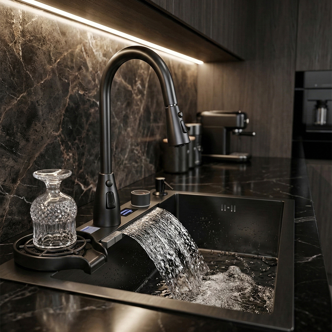 Şık siyah tasarımı, dijital kontrol paneli, entegre bardak yıkama aparatı, çok fonksiyonlu batarya sistemi ve geniş haznesi sayesinde günlük mutfak işlerini daha konforlu, daha hijyenik ve daha pratik hale getirir. Bulaşık yıkama, sebze-meyve temizleme ve bardak içi yıkama gibi işlemleri tek noktada kolaylaştırarak mutfakta zaman kazandırır.
