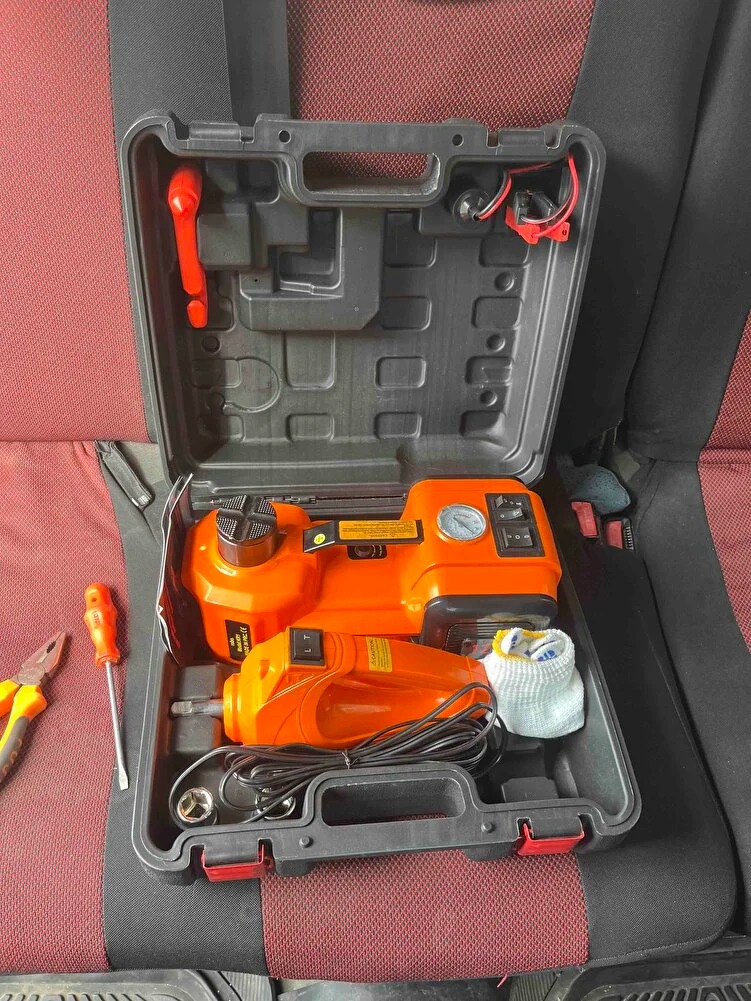 Sipariş verdim 2 günde İstanbul Avrupa yakasına geldi denedim kriko güzel yükseliyor iniyor bijon sökme 3 vuruşta söktü 3 vuruşta sıktı lastik şişirme yi deneme fırsatım vakit olmadığından denemedim ama çalışıyor cam kırma kemer kesme aparatı var iki lokma ucu var her iki tarafıda lokma ucu çok işlevsel akü maşası var sonrası çakmaklığı takmak için gayet güzel kutu içeriği tavsiye ederim arkadaşımada şipariş verdik yarumlara bakarak aldım teşekkürler herkese