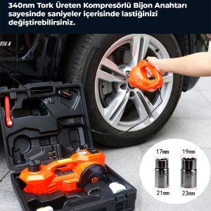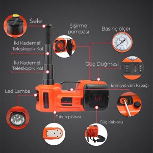 Robo Elektrikli Hidrolik Kriko + Hava Pompası + Bijon Anahtarı Özellikleri: