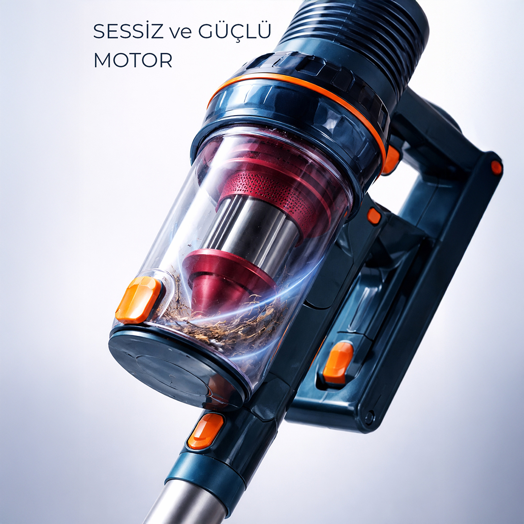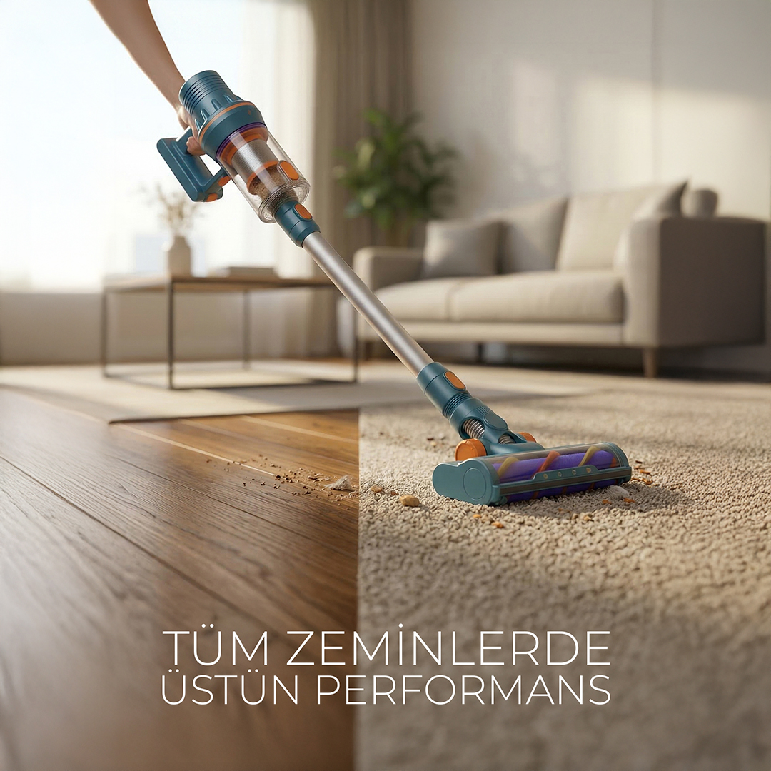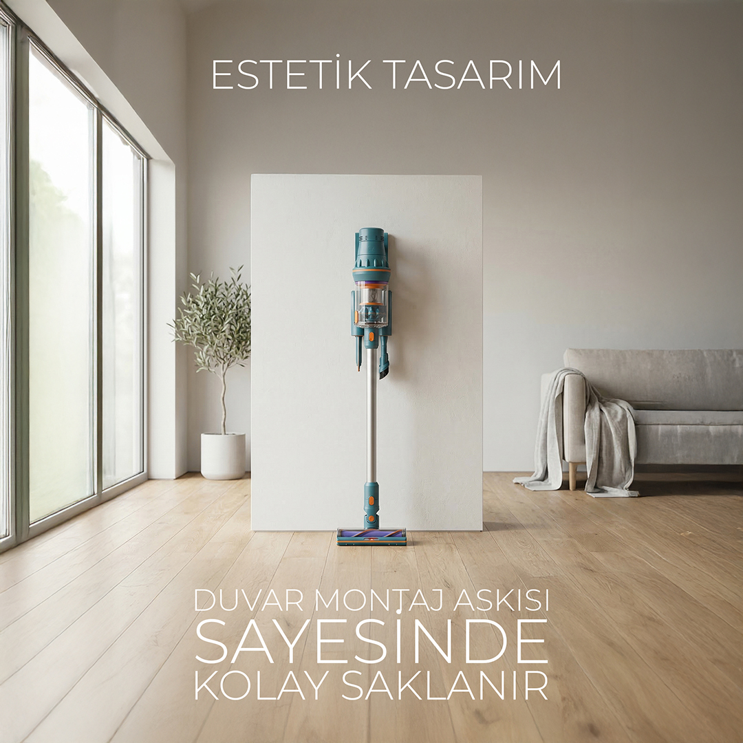 Gelişmiş batarya yapısı sayesinde tek şarjla 30 ila 45 dakika arası kullanım süresi sunar. Kabloya bağlı kalmadan özgürce hareket etmenizi sağlar ve özellikle geniş alanlarda temizlik yaparken büyük kolaylık sunar.