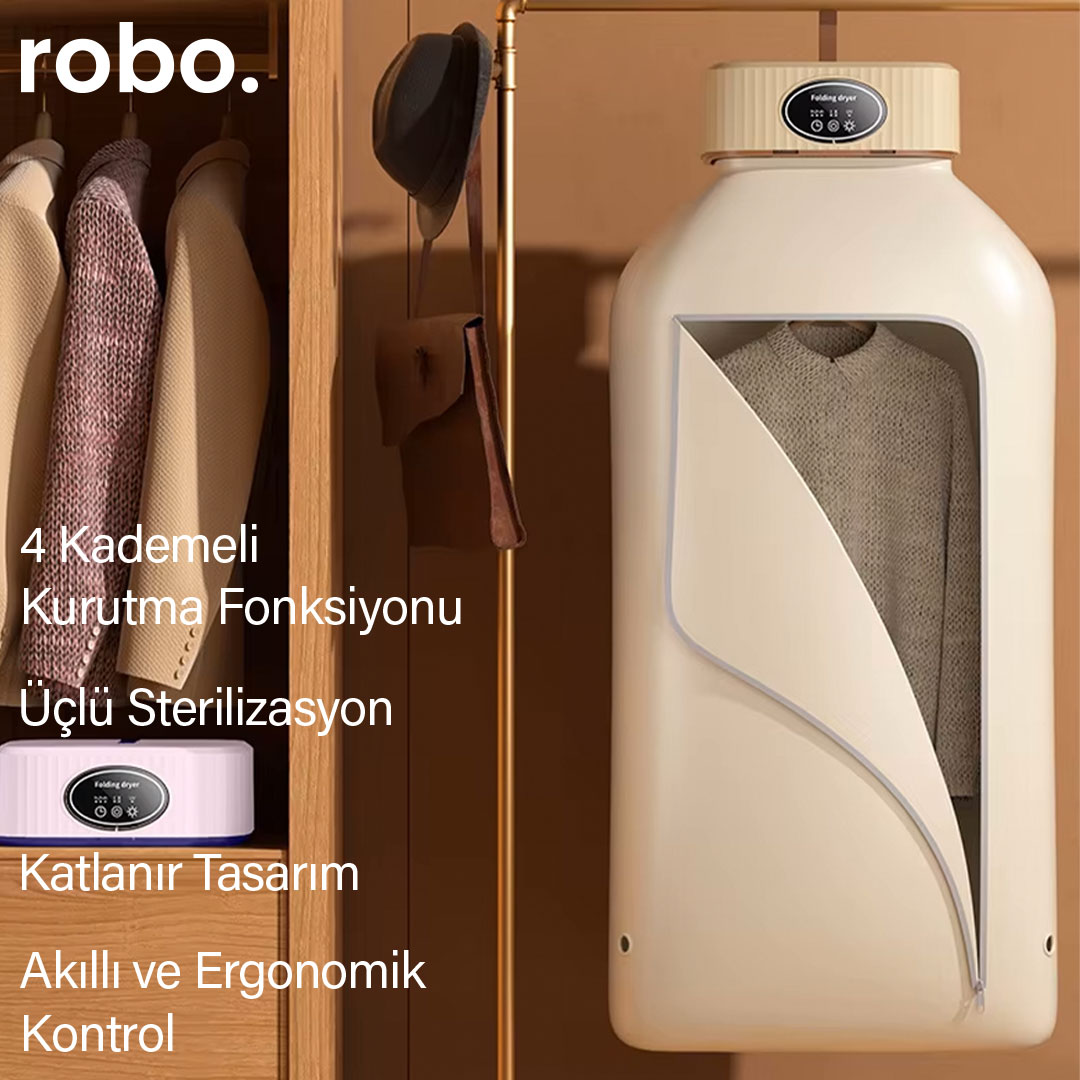 Robo’dan Türkiye’de Bir İlk: Katlanır Taşınabilir Çamaşır Kurutma Makinesi! Bu yenilikçi ürün, kompakt ve taşınabilir tasarımıyla her yerde kolayca kullanılabilir. İster dairede yaşayın, ister tatile gidin ya da karavanda kamp yapın, çamaşır kurutma ihtiyaçlarınıza çevre dostu ve hızlı bir çözüm sunar.
