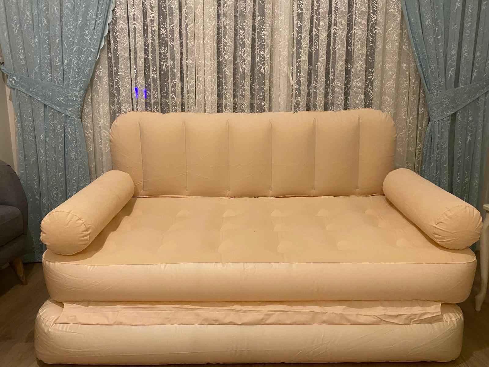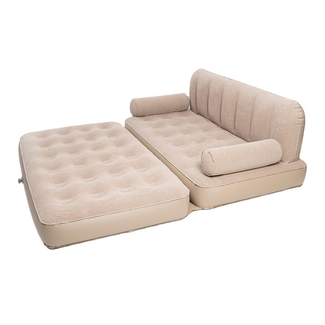 190×150×65 cm ölçülerindeki geniş yüzeyi, iki kişiye konforlu oturma veya uyuma alanı sunar. Açıldığında tam boy çift kişilik yatak, kapandığında ise modern bir şişme kanepe formuna dönüşür. 300 kg’a kadar taşıma kapasitesi ile dayanıklılığı test edilmiş yapıdadır.
