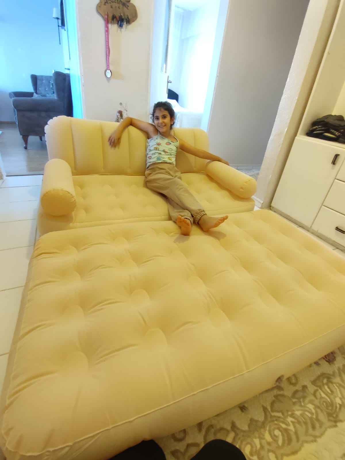 Kamp için aldım.Hem koltuk hem yatak olması çok iyi olmuş. 2 kişi rahat rahat oyuyor. Kalitesi gayet iyi. Ben sevdim.