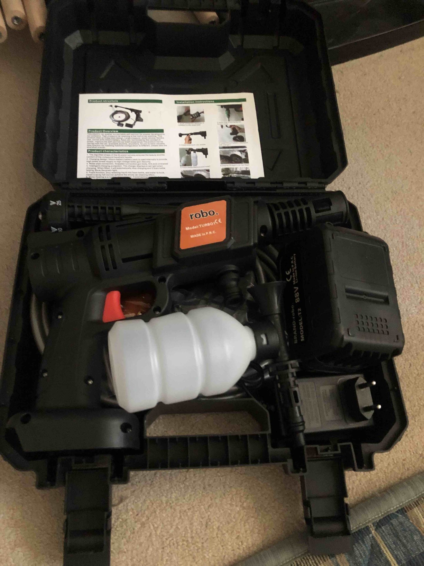 Güzel bir ürün. 2 araba yıkadıktan sonra şarjı bitti . 2 kova su ile 1 araba yıkadık .