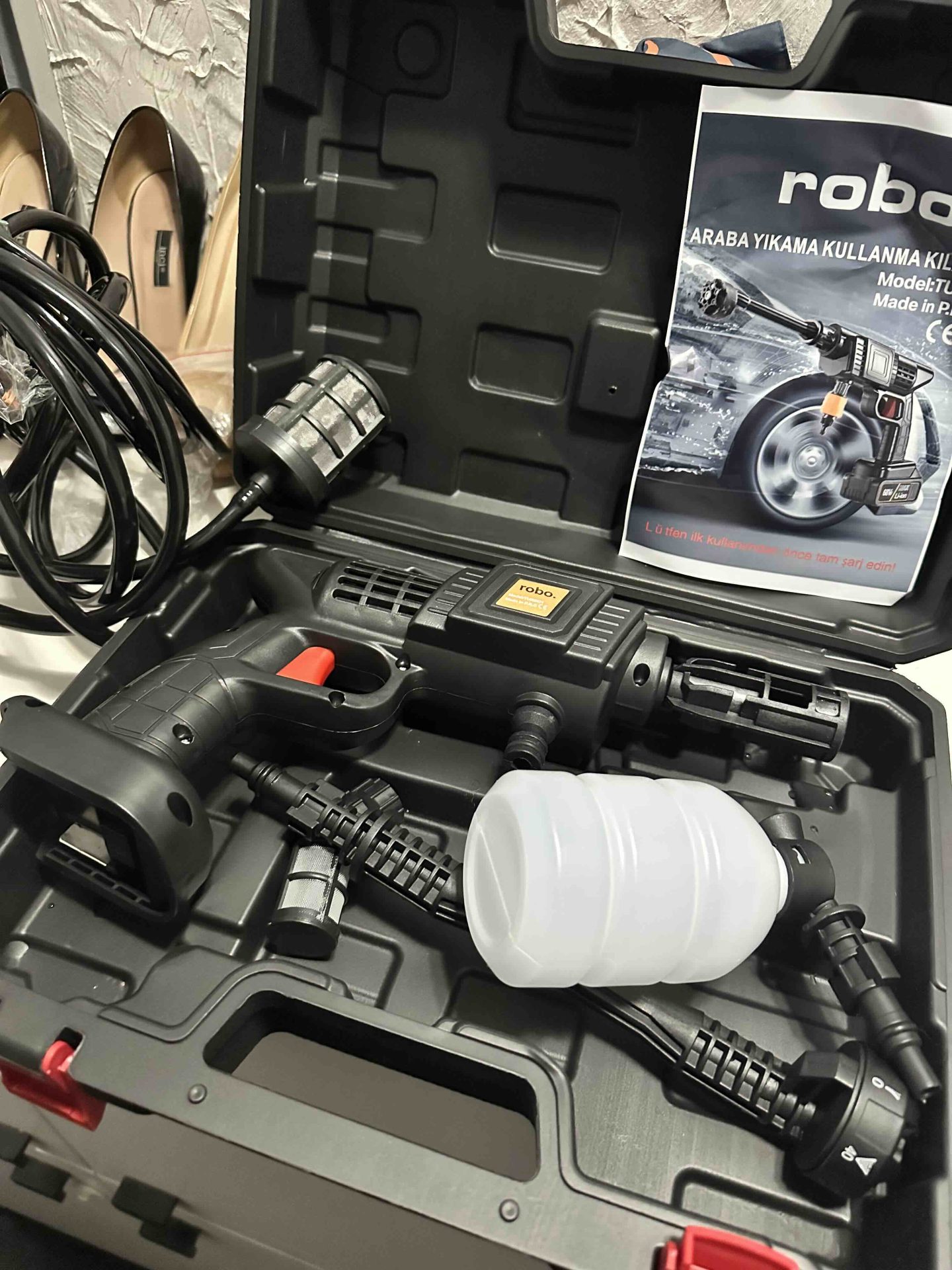 Robo. Basınçlı şarjlı yıkama ve sulama makinesi ile ister araçlarınızı yıkayın ister balkon ya da bahçenizde sizi zorlayan alanları temizleyin. Çit, Korkuluk, Zorlu zeminler, Çatı gibi yüksek alanlar ve daha bir çok alanda etkili kullanım sunar. Kendi Aracınızı Yıkamanın Keyfine Varın. Çanta Hediyeli. 2 YIL Türkiye Ritzy Garantili.