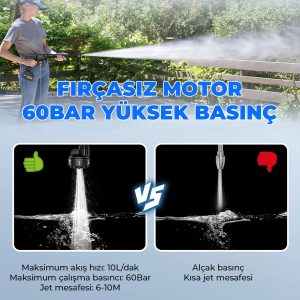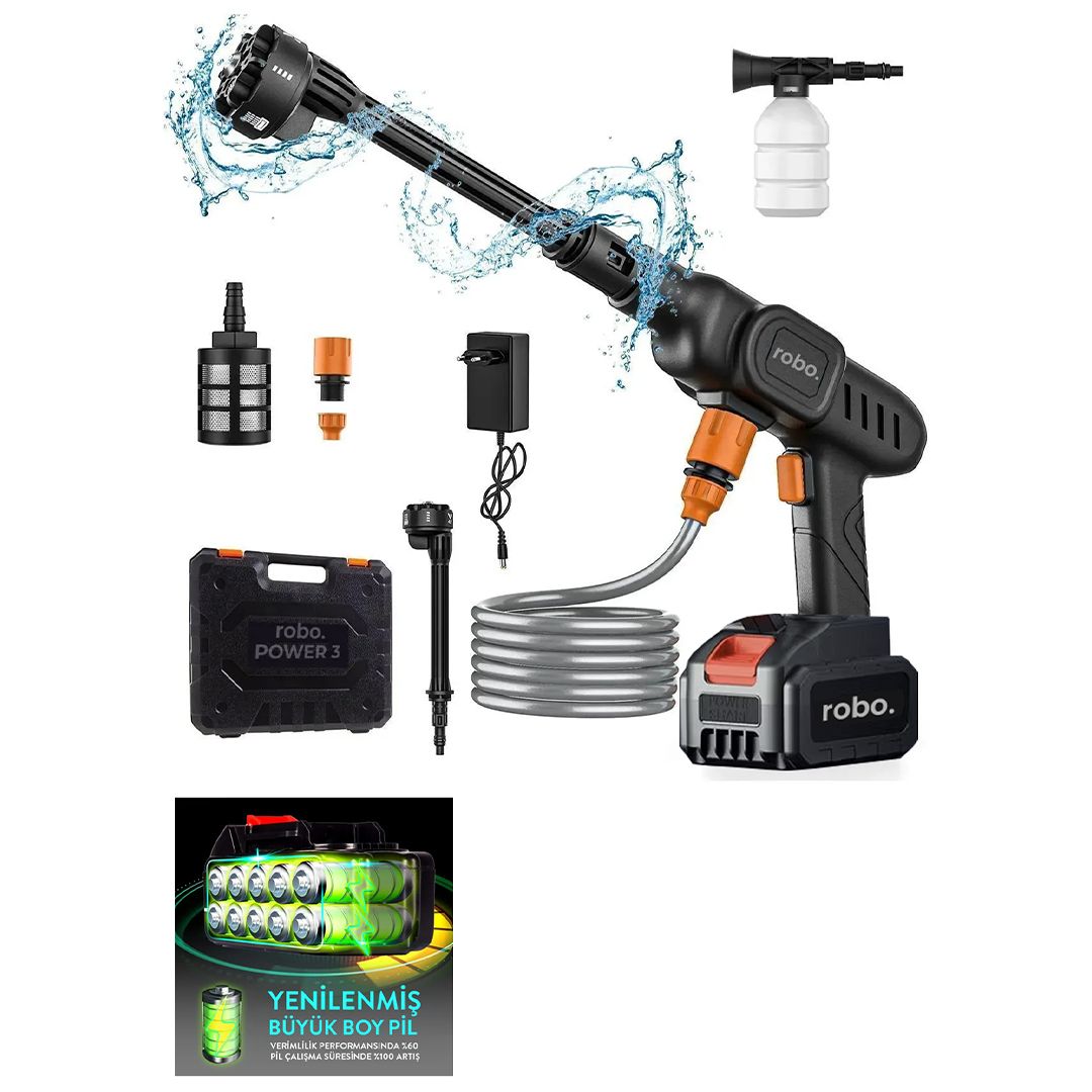 robo Şarjlı Ve Yüksek Basınçlı 50 Bar Oto Yıkama ve Sulama Tabancası