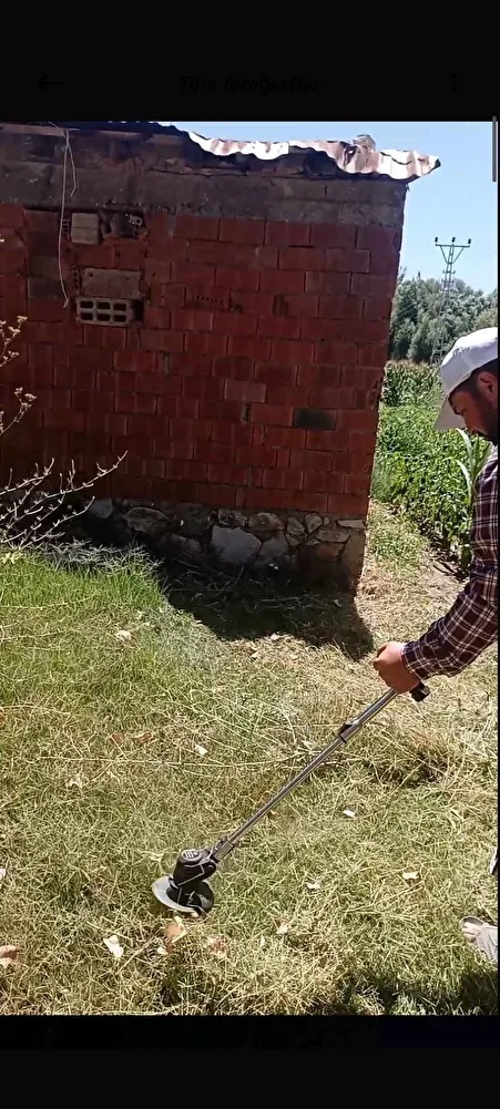 Tam emekli işi sorunsuz otları temizledim. Uzun otlar için büyük çelik başlığı takıyorum muhafasını çıkardım daha rahat kestim. Uzun otlar sarılmıyor daha