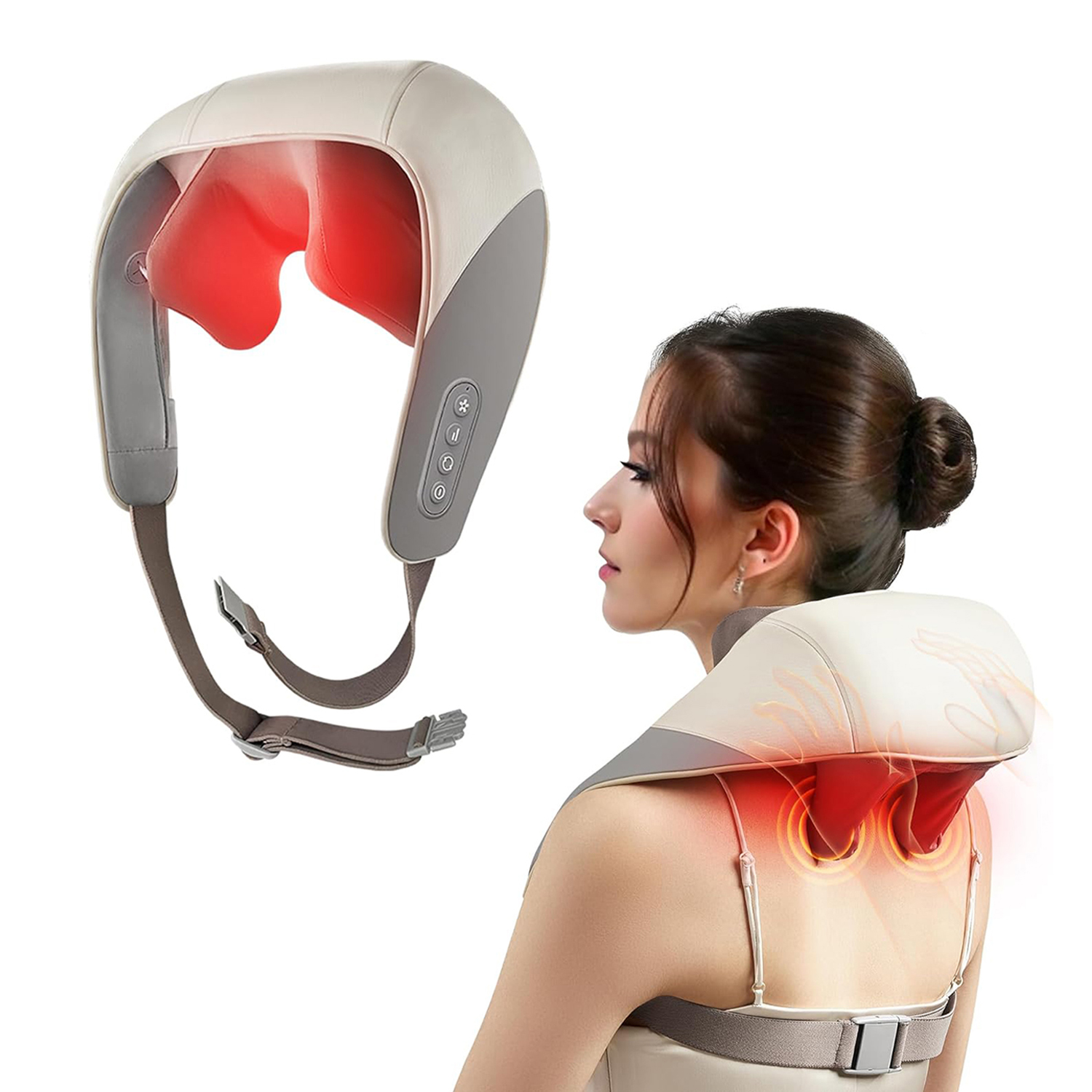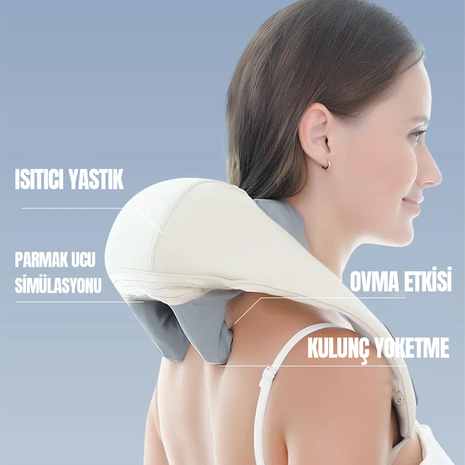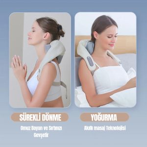 Ergonomik tasarımı ve giyilebilir yapısı sayesinde boynunuza veya omuzlarınıza kolayca takabilir, ayarlanabilir askıları ile vücudunuza tam uyum sağlayabilirsiniz. Masaj süresince ellerinizi serbest bırakın, dinlenmenin keyfini çıkarın.