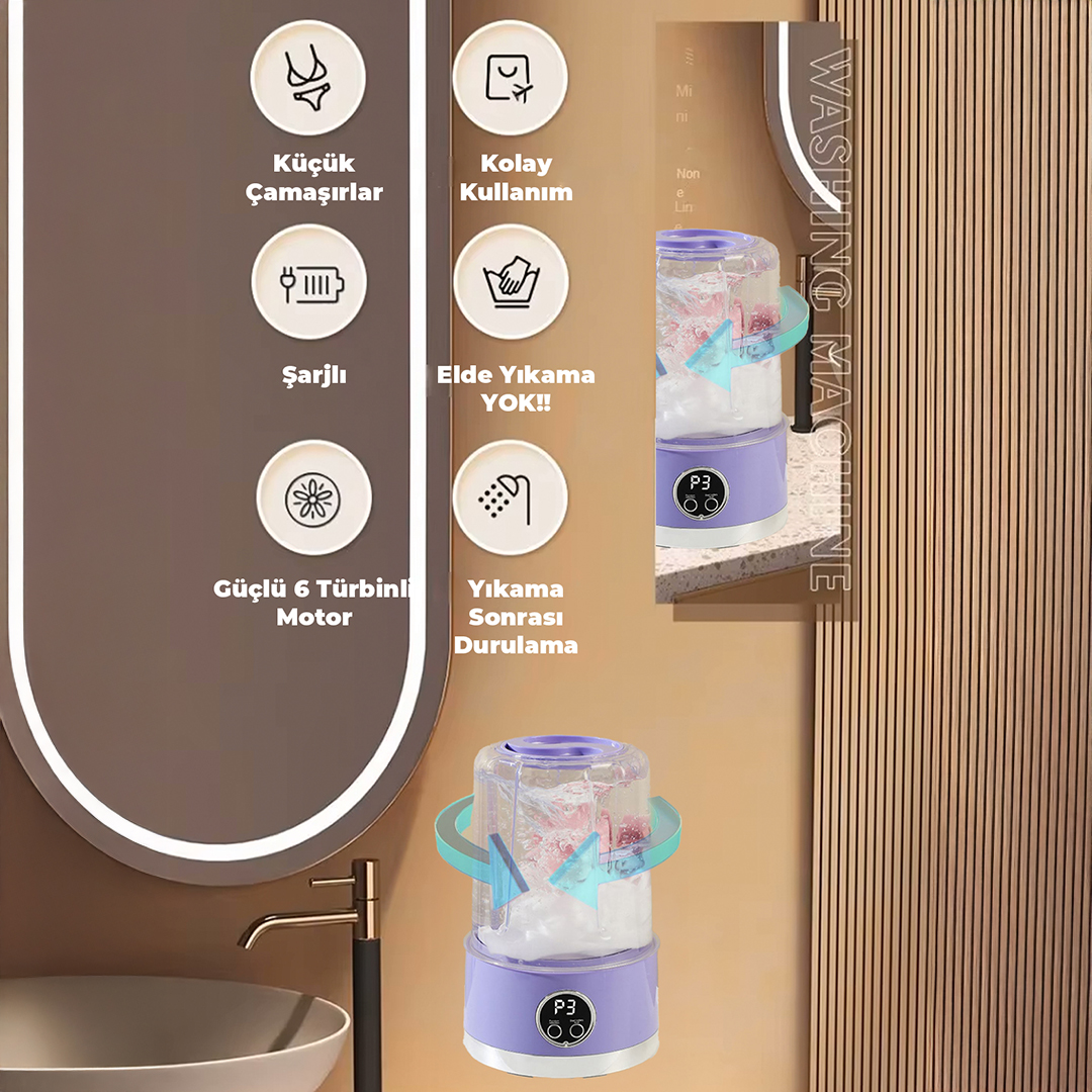 robo Şarjlı Taşınabilir Çamaşır Makinesi Özellikleri: