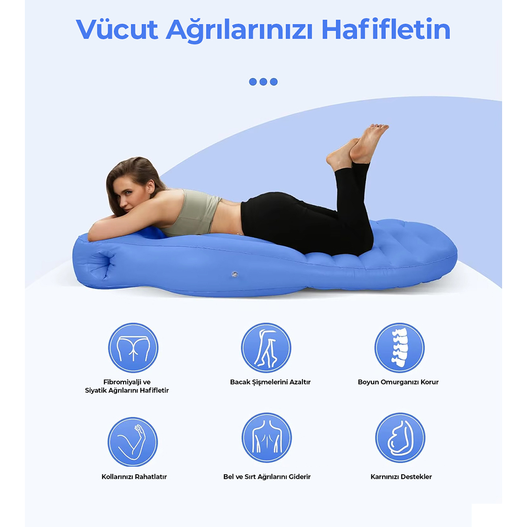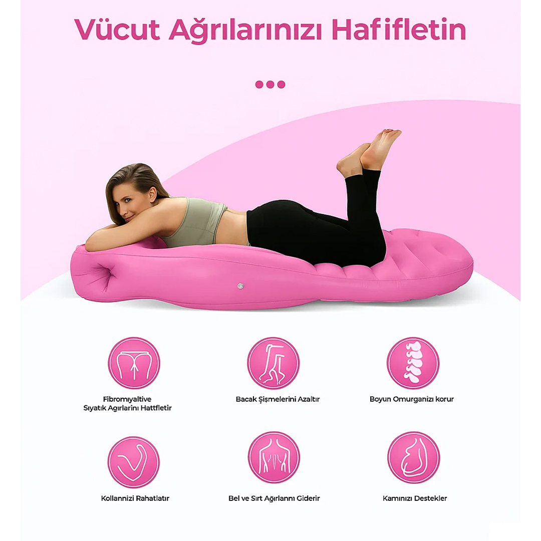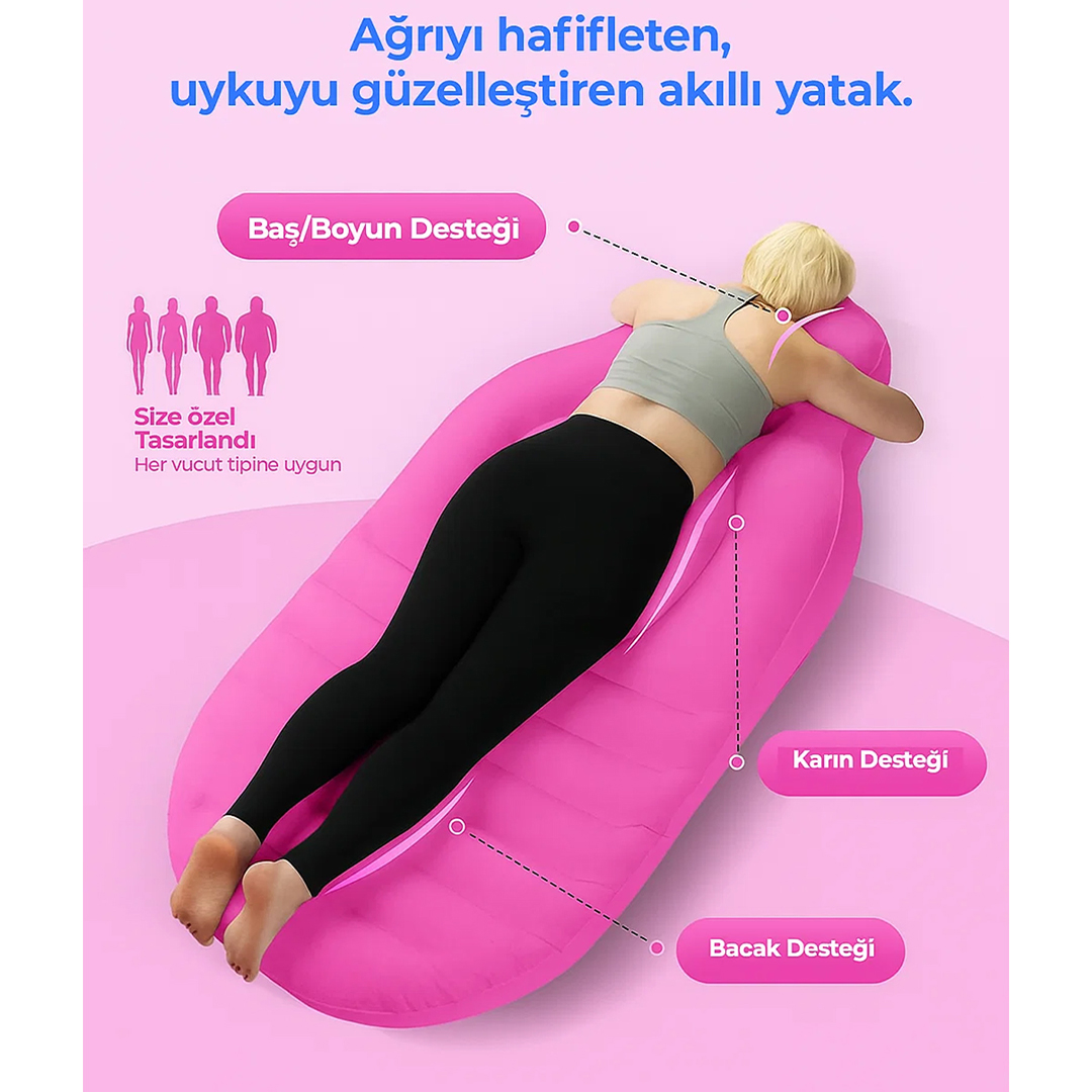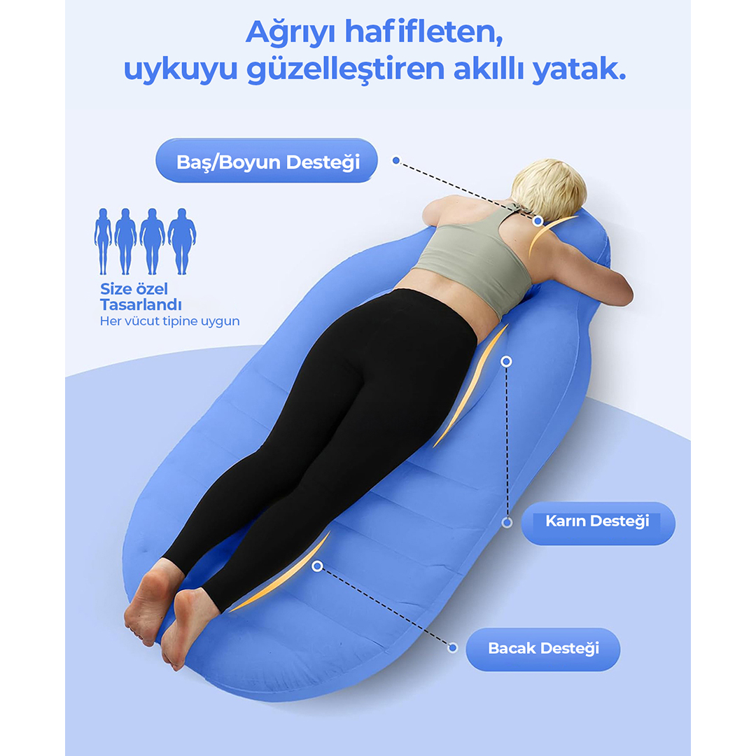 Hamilelik sürecinde artan vücut hassasiyeti, uyku bölünmeleri ve rahat pozisyon bulma zorluğu artık dert değil! Özel olarak tasarlanan robo. Şişme Hamile Yatağı, karın, sırt, boyun ve bacak bölgelerine destek sağlayarak daha konforlu bir dinlenme deneyimi sunar.