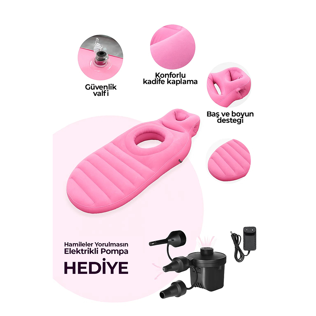 Elektrikli pompa ile yatağı birkaç dakika içinde şişirip kullanabilirsiniz. Araç çakmak girişine uygun kablo/adaptör dahildir. 🔌🚗