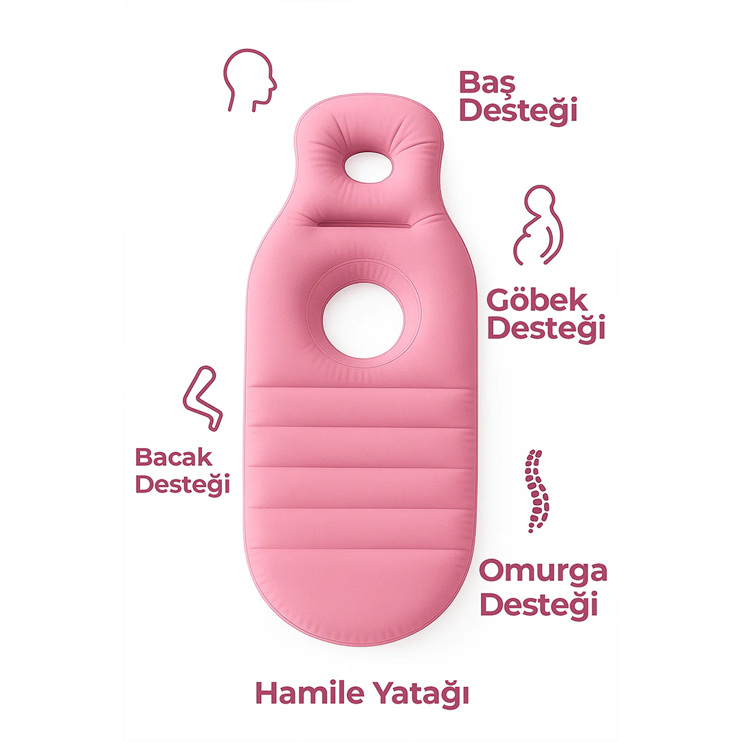 Orta kısımdaki yuvarlak destek alanı sayesinde anne adayının karnı rahatça yerleşir, baskı azalır ve daha dengeli bir yatış pozisyonu desteklenir.