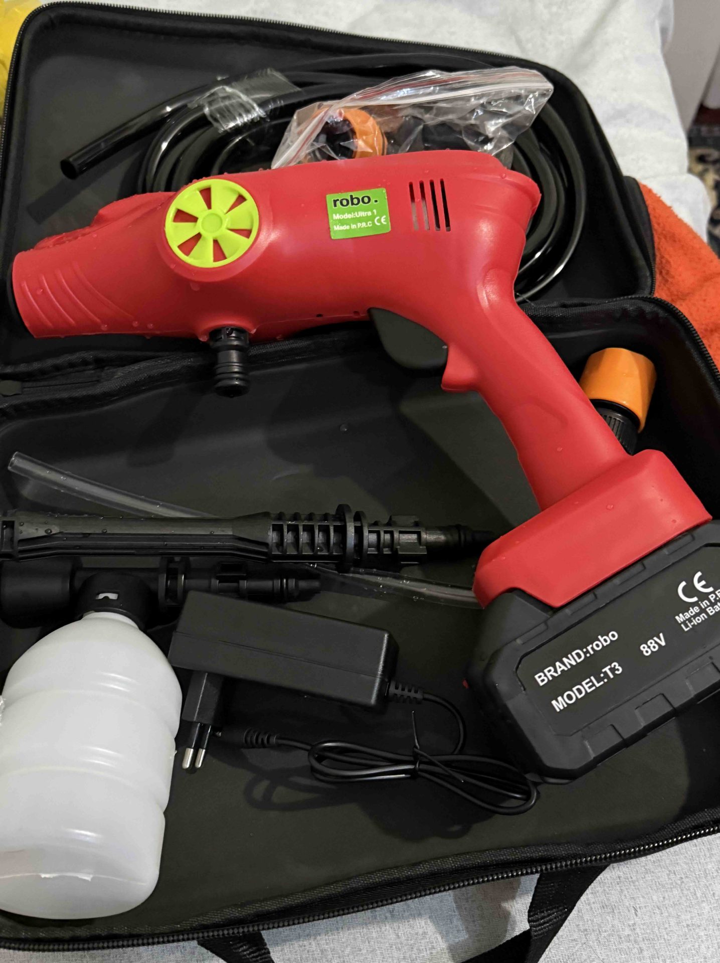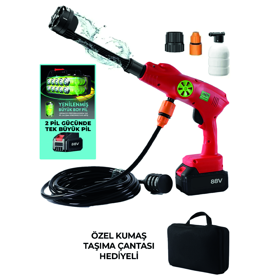 robo Ultra 1 90 Bar 88W Şarjlı ve Yüksek basınçlı Oto Yıkama Ve Sulama Tabancası Özellikleri: