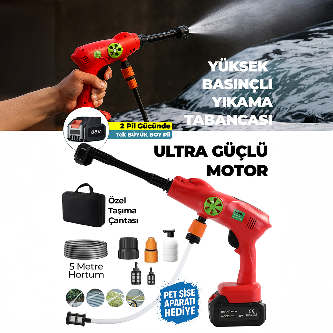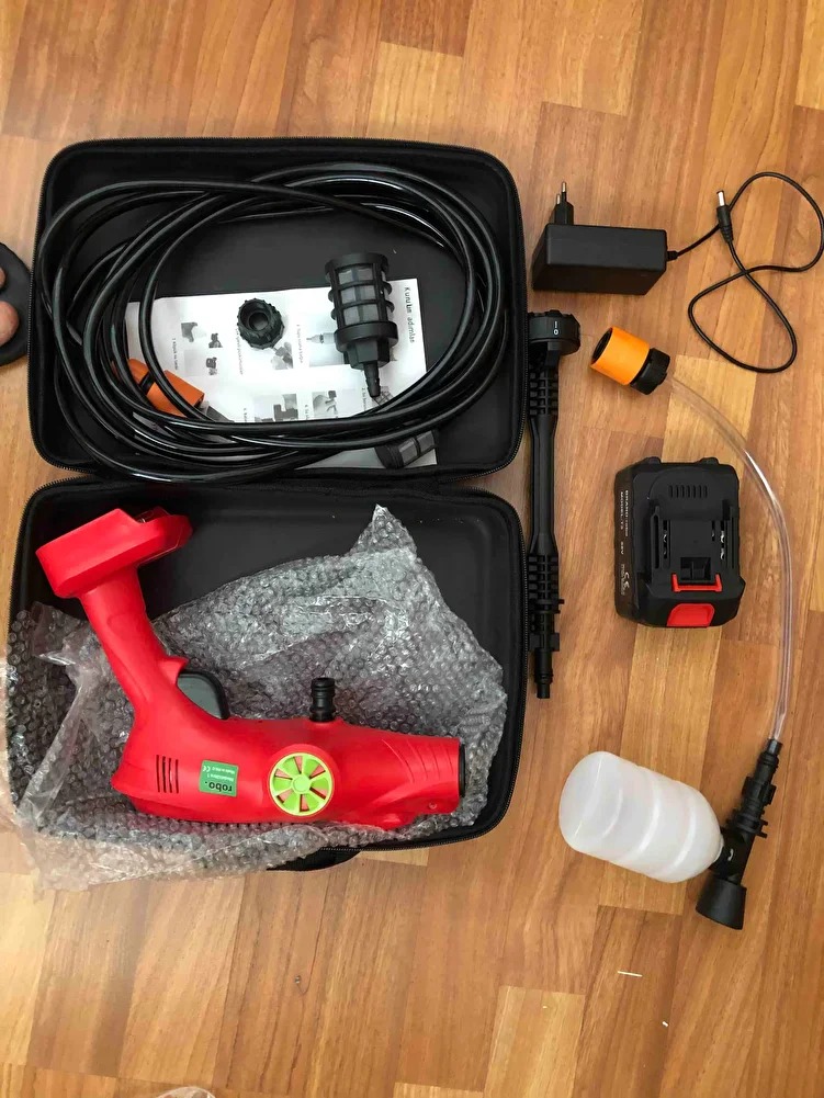 Yüzbinlerce satan Robo yüksek basınçlı yıkama tabancası yenilendi! Şimdi daha güçlü motor daha yüksek basınç ve daha uzun şarj süresi ile yeni bir efsane doğuyor. Otomobil, Çit, Korkuluk, Zorlu zeminler, Çatı gibi yüksek alanlar ve daha bir çok alanda etkili kullanım sunar.