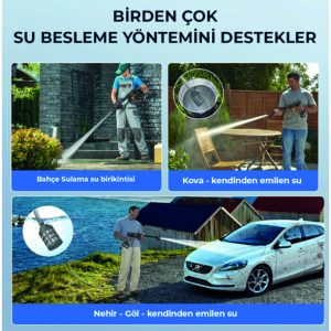 İster kovadan ister damacanadan ister pet şişeden isterseniz göletten su alarak aracınızı her yerde yıkama imkanı