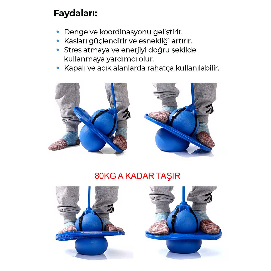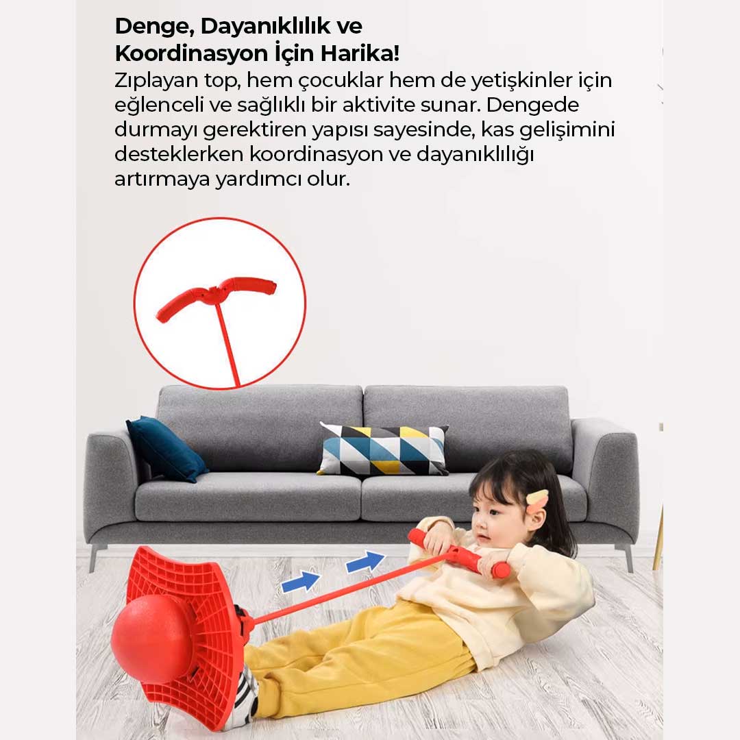 Zıplayan top, hem çocuklar hemde yetişkinler için eğlenceli ve sağlıklı bir aktivite sunar. Dengede durmayı gerektiren yapısı sayesinde, kas gelişimini desteklerken koordinasyon ve dayanıklılığı arttırmaya yardımcı olur.